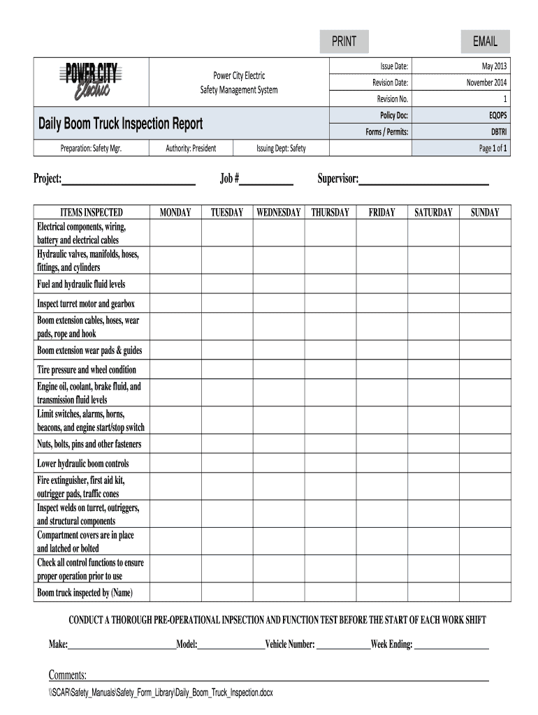 Safety Management Systemically Boom Truck Inspection Report