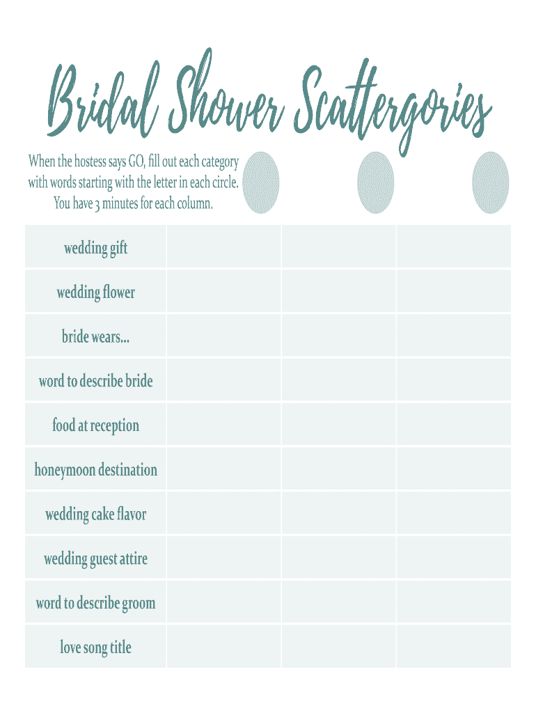 Fill out your bridal shower scattergories form online with pdfFiller!
