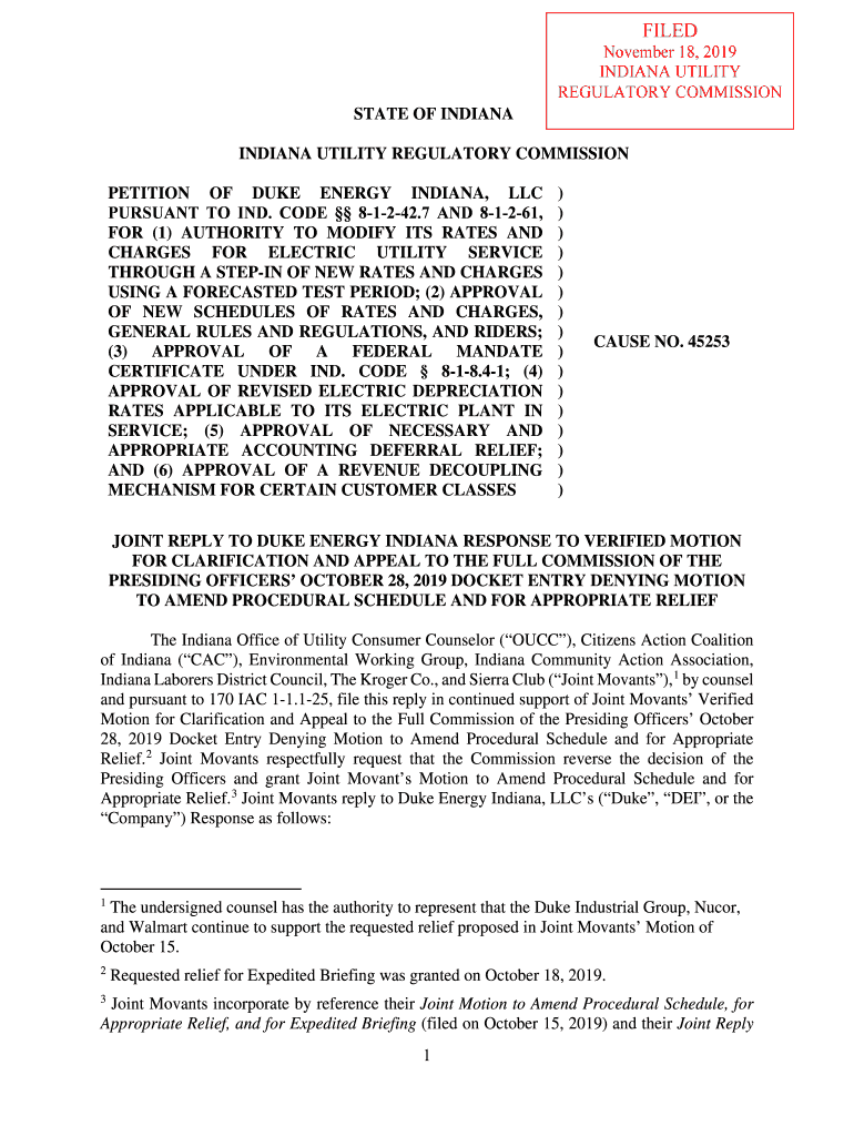 FILED November 18, 2019, INDIANA UTILITY REGULATORY COMMISSION STATE OF INDIANA UTILITY REGULATORY COMMISSION PETITION OF DUKE ENERGY INDIANA, LLC PURSUANT TO IND. CODE 81242.7 AND 81261, FOR (1)
