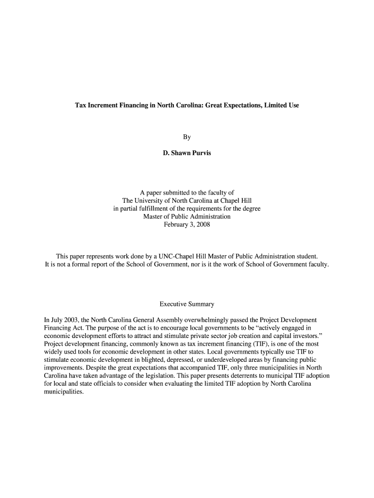 Get the free Tax Increment Financing in North Carolina: Great ...