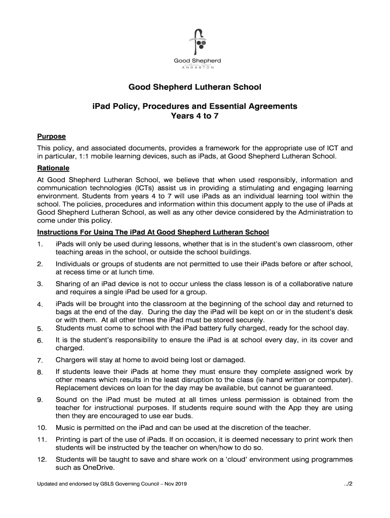 Get the free Good Shepherd Lutheran School iPad Policy, Procedures and ...