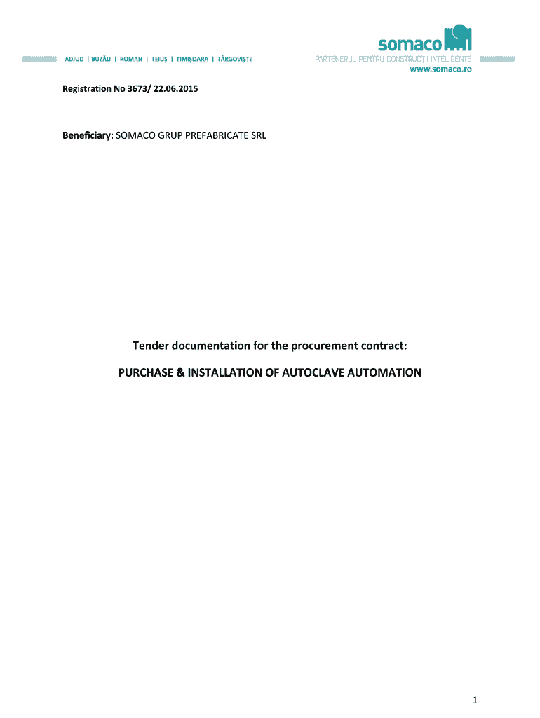 Registration No 3673/ 22.06.2015Beneficiary: STOMACH GROUP PREFABRICATE Slender documentation for the procurement contract: PURCHASE & INSTALLATION OF AUTOCLAVE AUTOMATION1CONTENT OF THE DOCUMENTATION