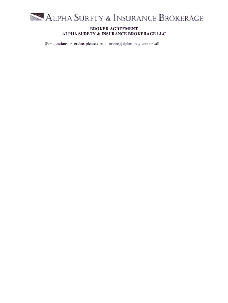 Get the free BROKER AGREEMENT ALPHA SURETY & INSURANCE BROKERAGE LLC