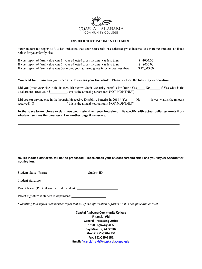 Get the free INSUFFICIENT INCOME STATEMENT You need to explain how