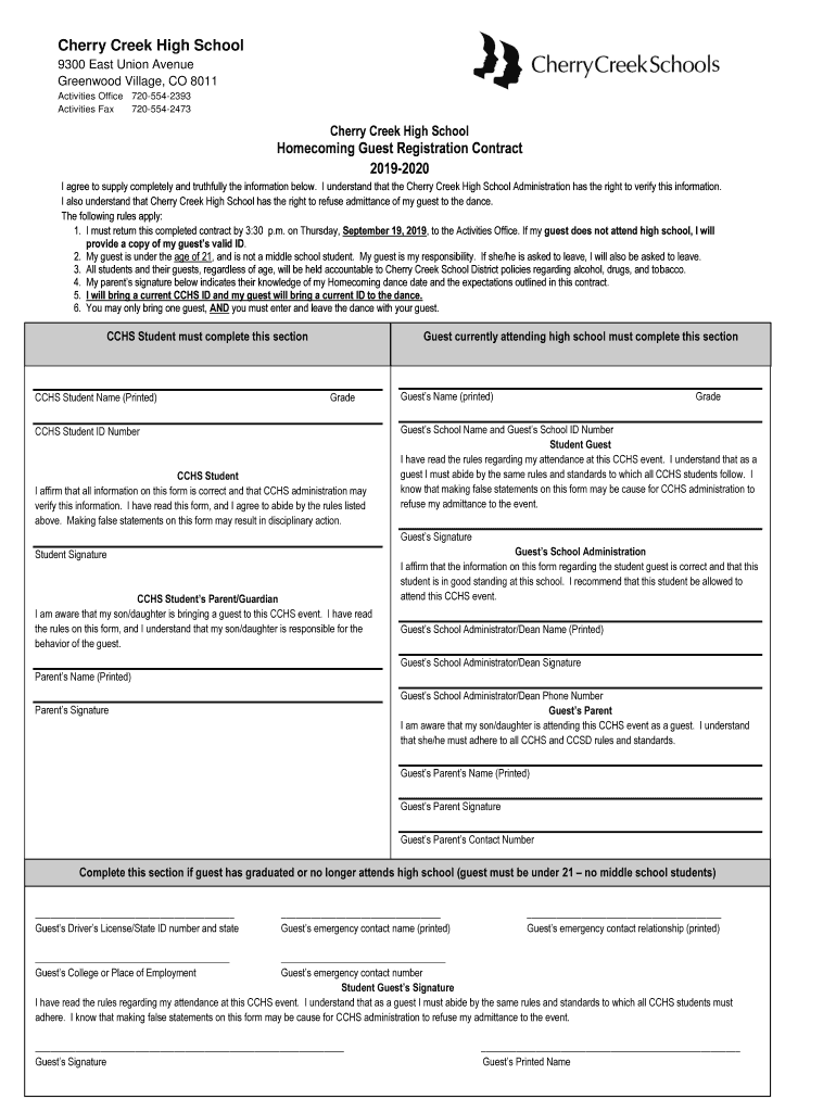 7205542473Cherry Creek High SchoolHomecoming Guest Registration Contract