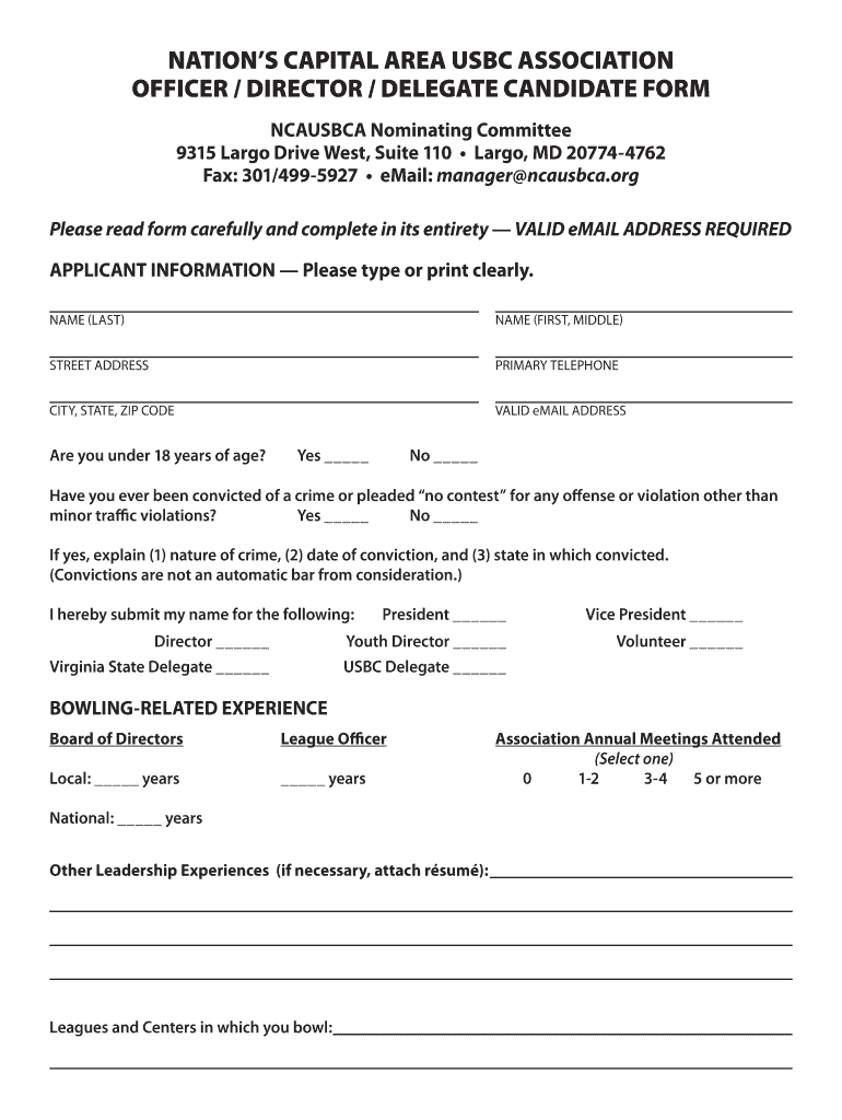Get the free nation's capital area usbc association officer ... - ncausbca
