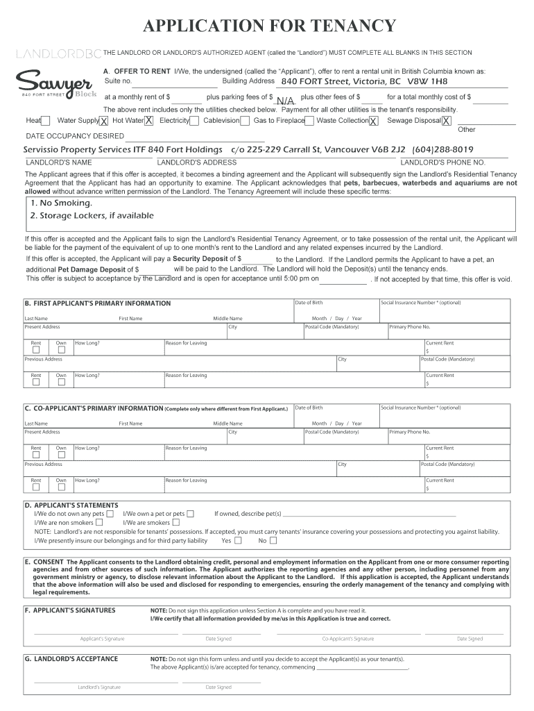 THE LANDLORD OR LANDLORD\'S AUTHORIZED AGENT (called the Landlord) MUST COMPLETE ALL BLANKS IN THIS SECTION. OFFER TO RENT I/We, the undersigned (called the Applicant), offer