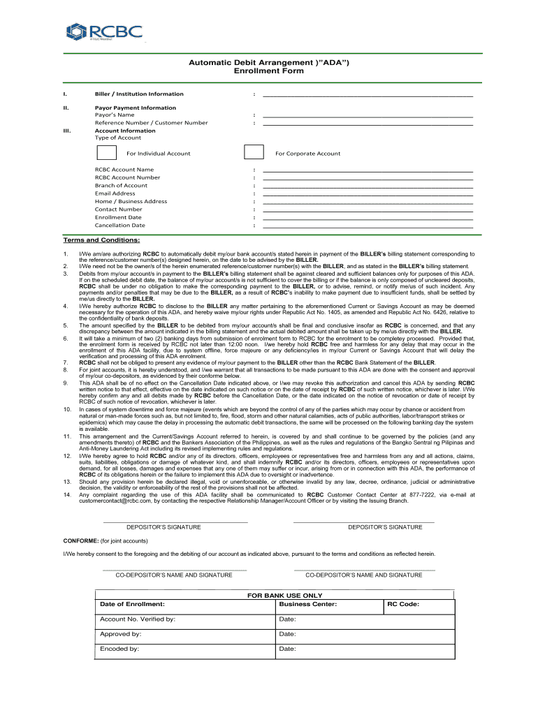 How to fill out auto-debit arrangement ada enrollment