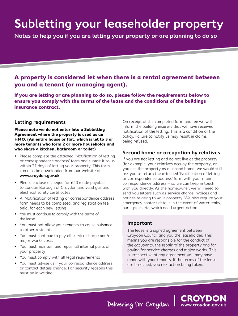 Notes to help you if you are letting your property or are planning to do SOA property is considered let when there is a rental agreement between