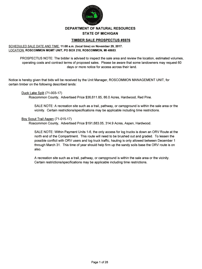 Anyone conducting a timber sale on federal lands is required to file timber sale prospectus 5976.
