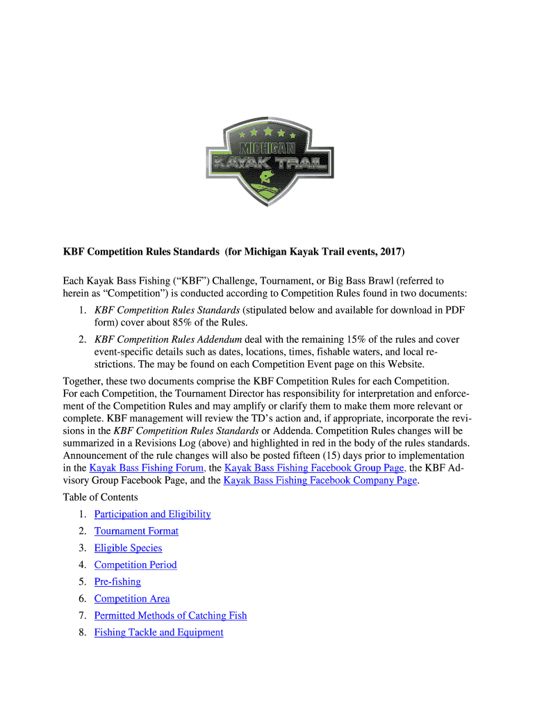 Get the free KBF Competition Rules Standard - Kayak Bass Fishing - KBF