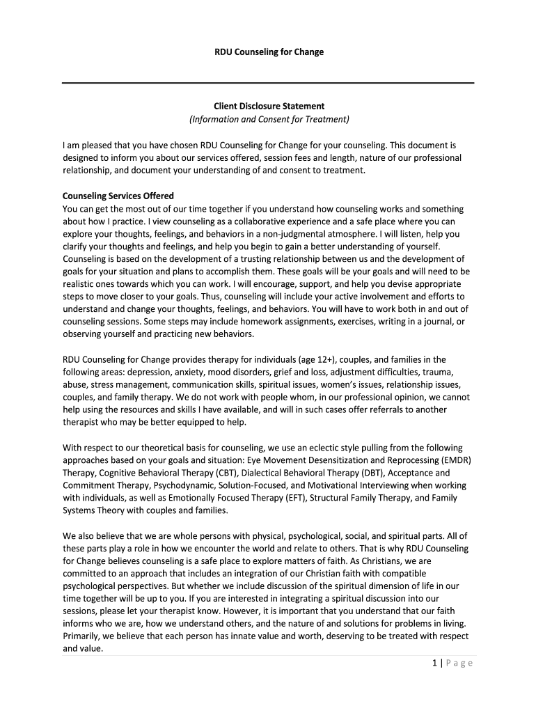 Get the free Page RDU Counseling for Change Client Disclosure Statement