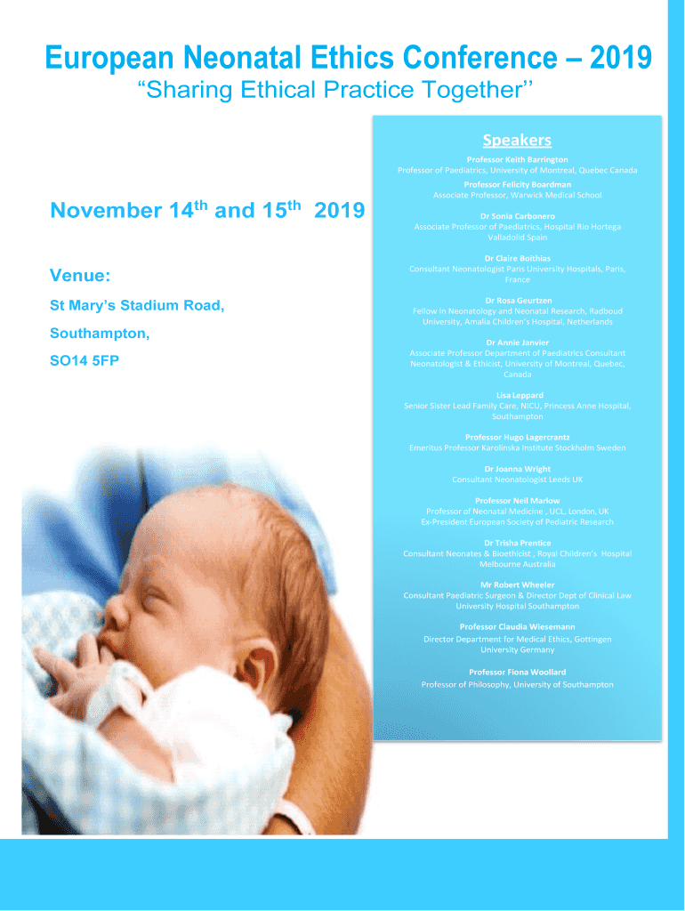 Type text European Neonatal Ethics Conference 2019 Sharing Ethical Practice TogetherSpeakers Professor Keith Barrington Professor of Pediatrics, University of Montreal, Quebec Canada November 14th