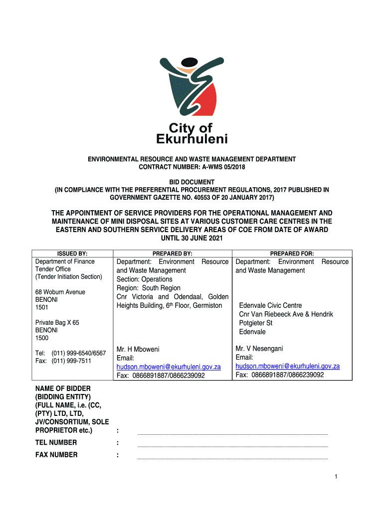 Get the free ENVIRONMENTAL RESOURCE AND WASTE MANAGEMENT DEPARTMENT