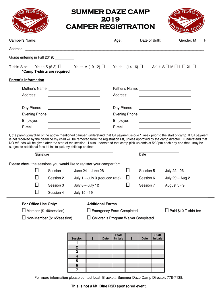 *Camp Shirts are requiredYouth M (1012)Youth L (1416)Adult: