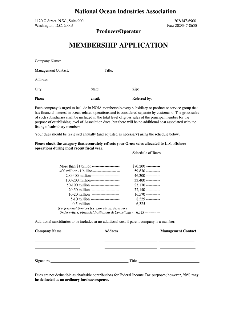 Get the free NOIA Producers Application Form - National Ocean Industries ...