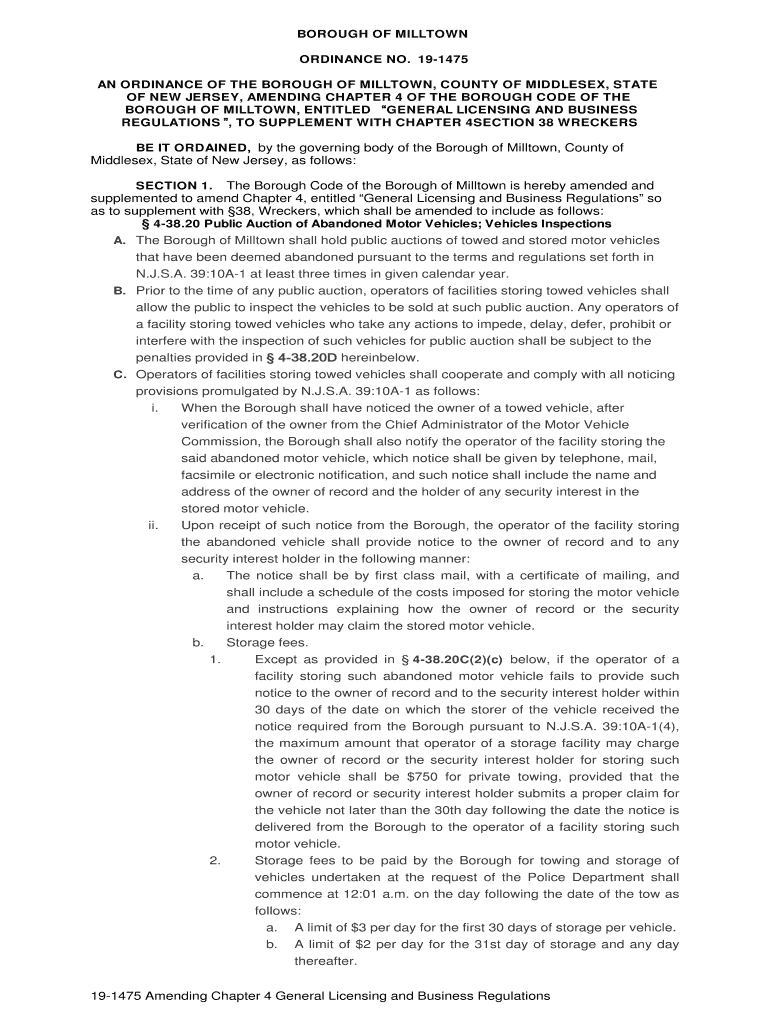 Get the free O19-1475 Abandoned Vehicles Ch 4 - Milltown, NJ