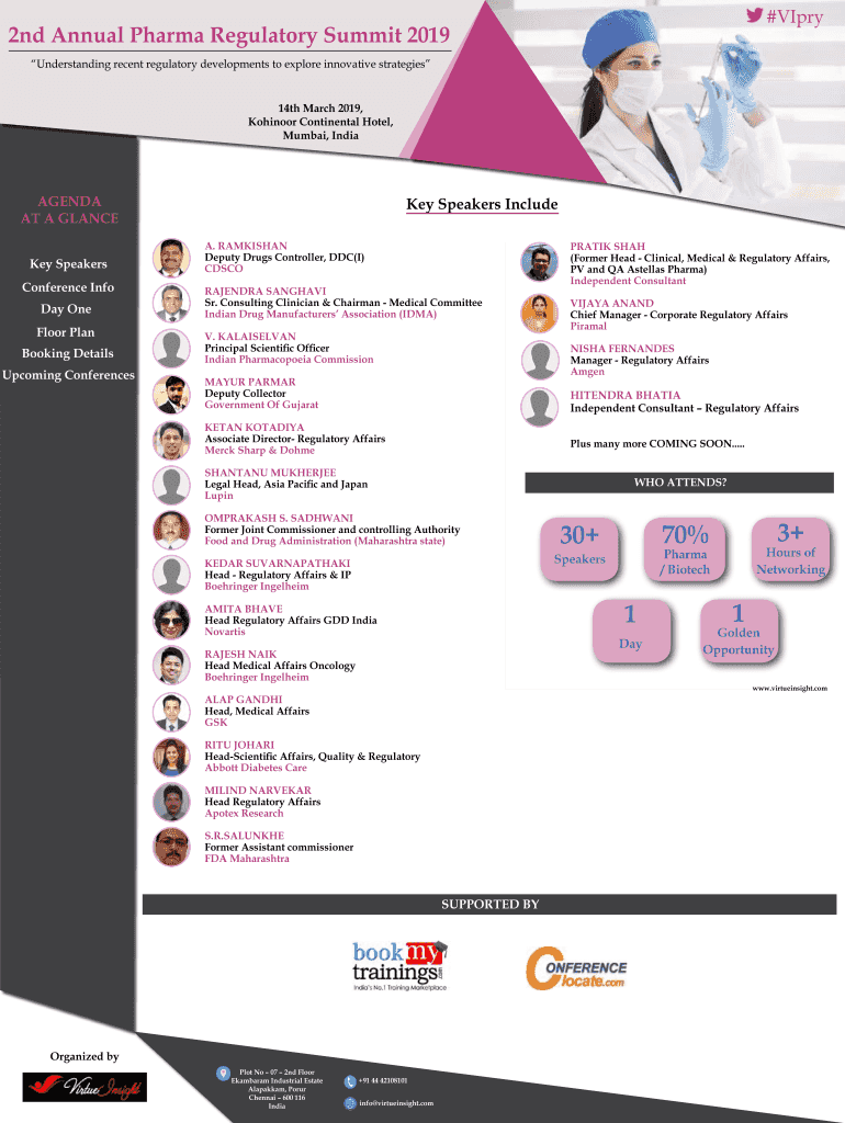 #VIpry2nd Annual Pharma Regulatory Summit 2019 Understanding recent regulatory developments to explore innovative strategies14th March 2019, Kohinoor Continental Hotel, Mumbai, IndiaAGENDA AT A GLANCE