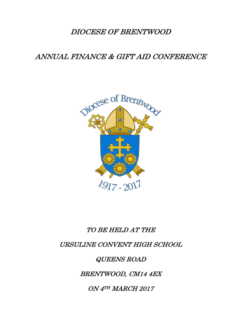 DIOCESE OF BRENTWOOD ANNUAL FINANCE & GIFT AID CONFERENCE TO BE HELD AT THE URSULINE CONVENT HIGH SCHOOL QUEENS ROAD BRENTWOOD, CM14 4EX ON 4TH MARCH 2017ANNUAL FINANCE & GIFT AID CONFERENCE Saturday