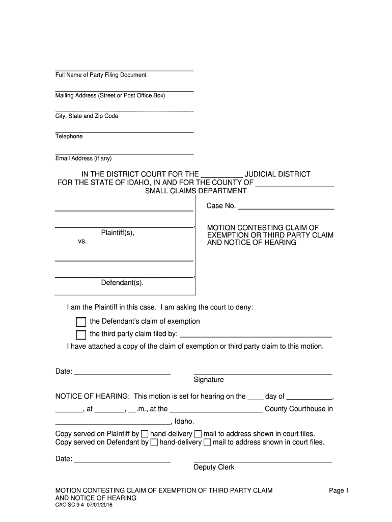 Get the free Full Name of Party Filing Document Mailing Address (Street or ... - courtselfhelp idaho