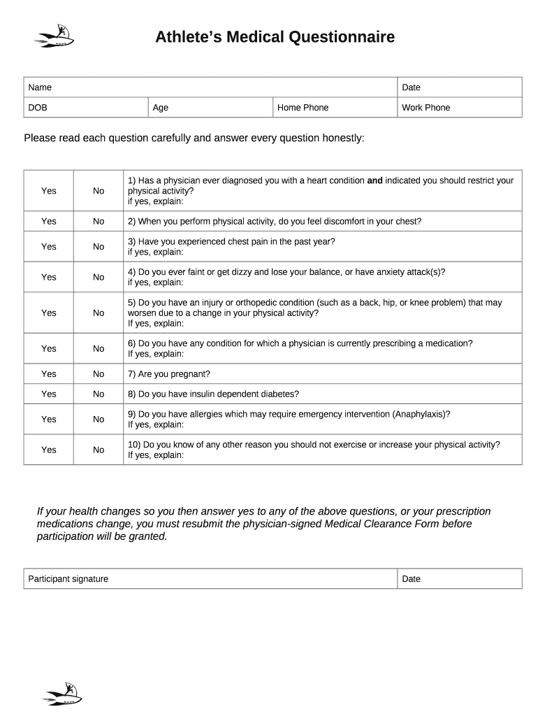 Athlete's Medical Questionnaire - Rocket Man Pole Vault template instructions