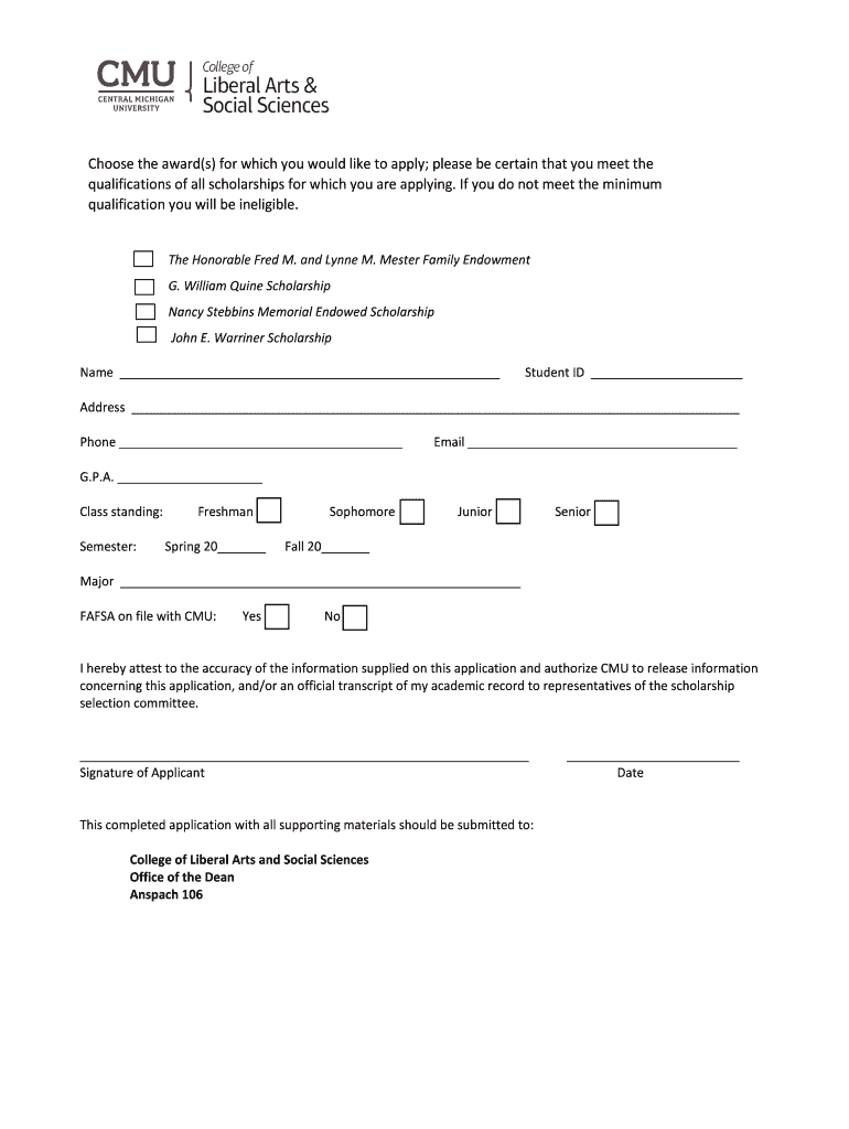 Scholarship Awards for Continuing Students Honorable Fred M. and Lynne M. Master Family Endowments endowment recognizes 1959 CMU graduate Judge Fred Meters distinguished judicial career spanning over