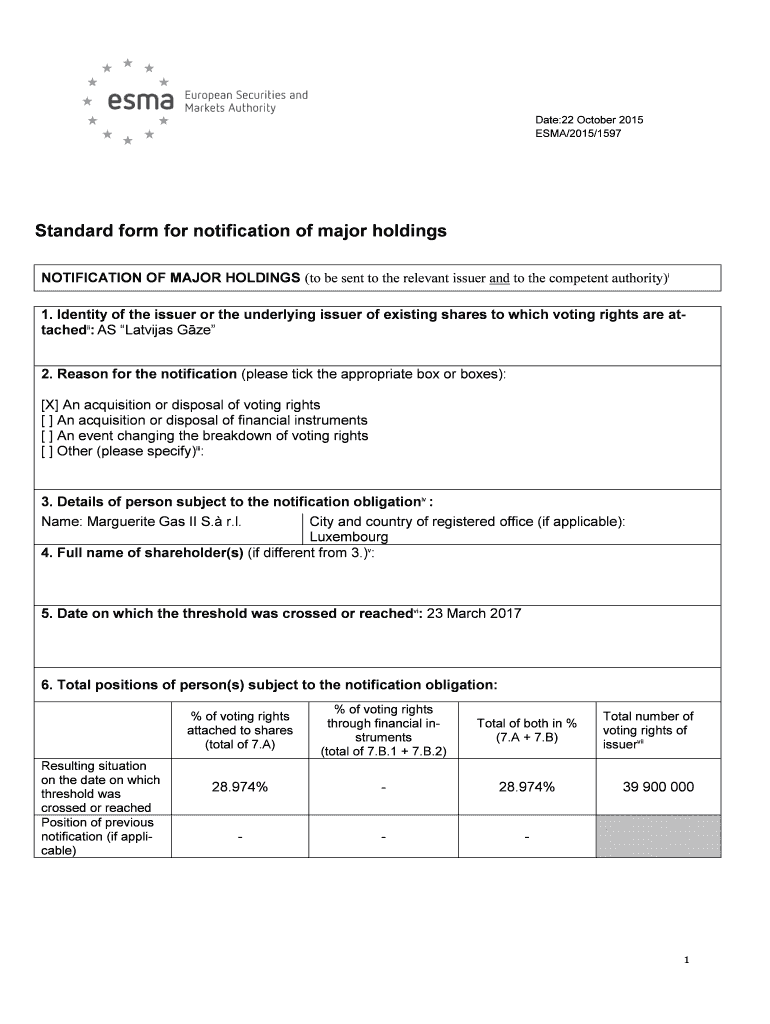Date:22 October 2015 EMMA/2015/1597Standard form for notification of major holdings NOTIFICATION OF MAJOR HOLDINGS (to be sent to the relevant issuer and to the competent authority)i 1. Identity of