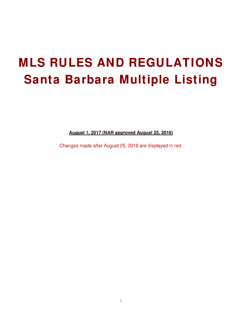 Santa Barbara Multiple Listing August 1, 2017 (NEAR approved August 25, 2016)Changes made after August 25, 2016, are displayed in red.1SECTION 1.AUTHORITY ......................................................................................................................................................................................
