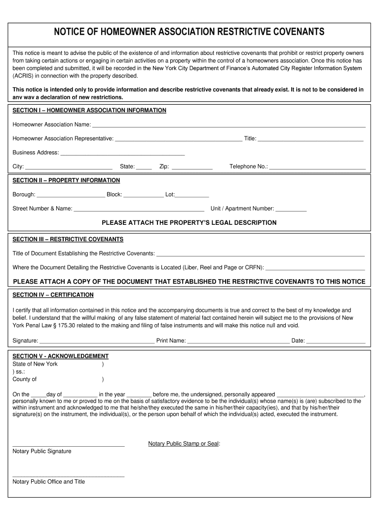 Get the free NOTICE OF HOMEOWNER ASSOCIATION RESTRICTIVE COVENANTS