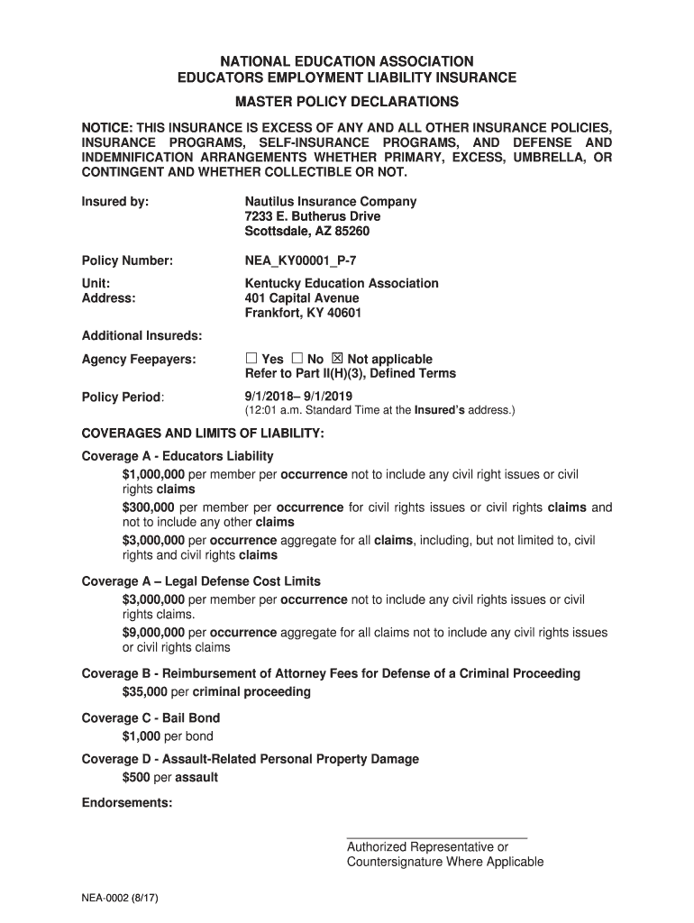 EDUCATORS EMPLOYMENT LIABILITY INSURANCE