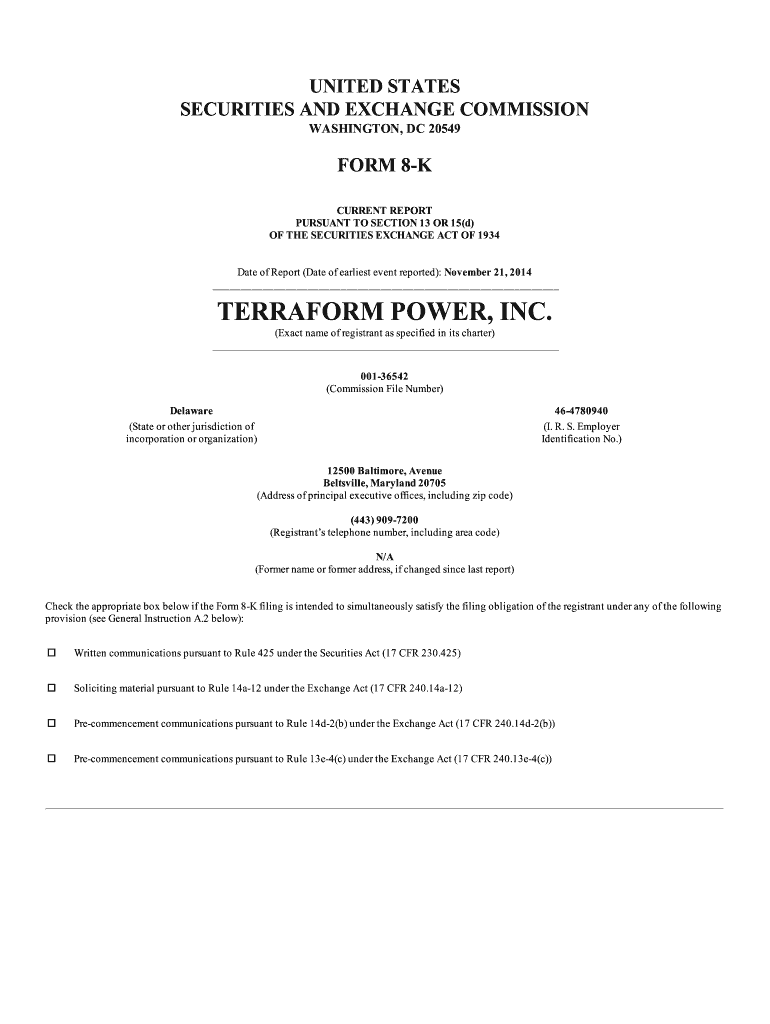 Get the free Date of Report (Date of earliest event reported): November 21, 2014