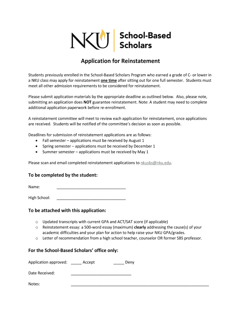 Application for Reinstatement