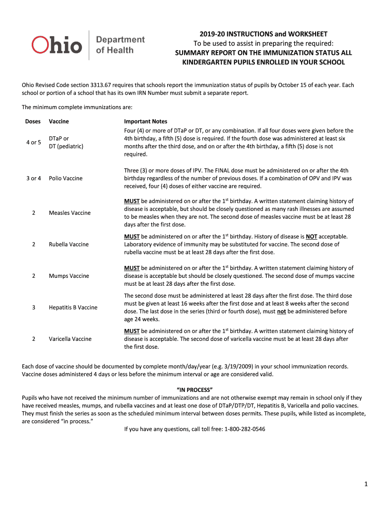 Information such as the specific immunizations required, any exemptions allowed, and the deadline for compliance must be reported on instructions for immunization level.