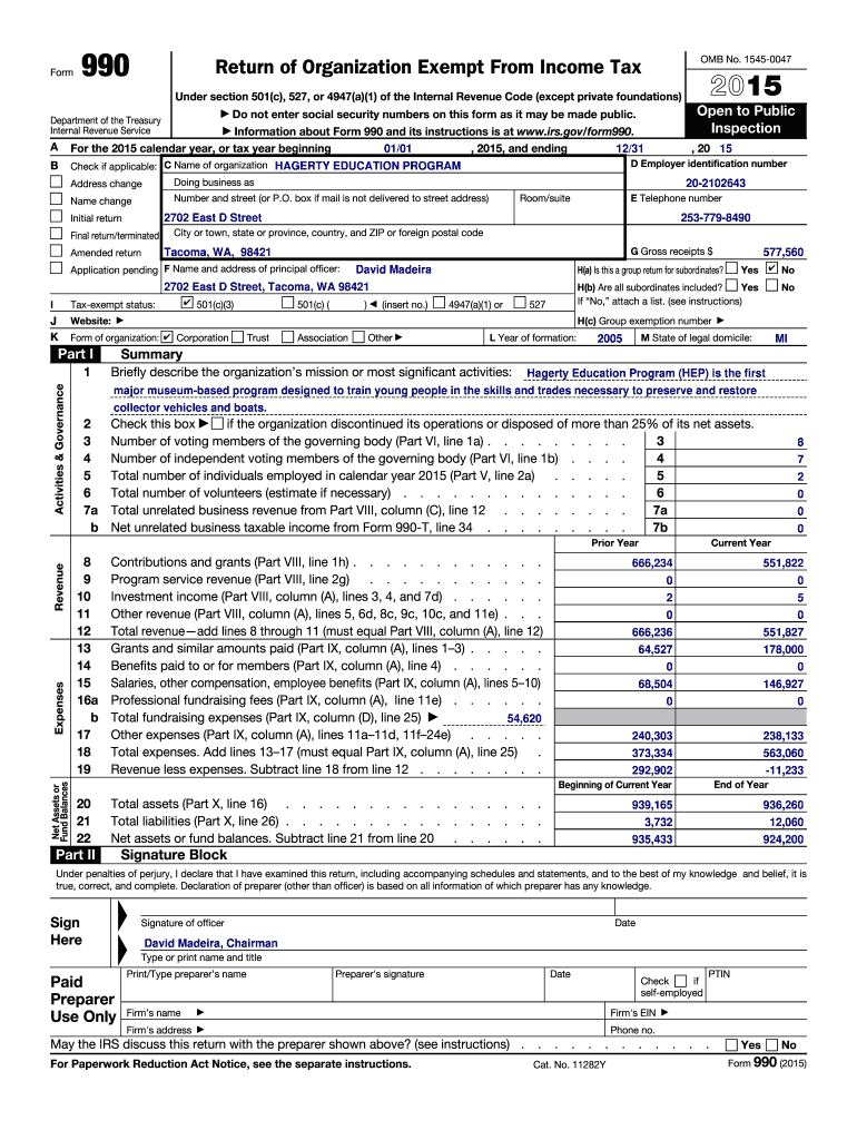 Form990OMB No. 15450047Return of Organization Exempt From Income Tax2015Under section 501(c), 527, or 4947(a)(1) of the Internal Revenue Code (except private foundations)Open to Publicly