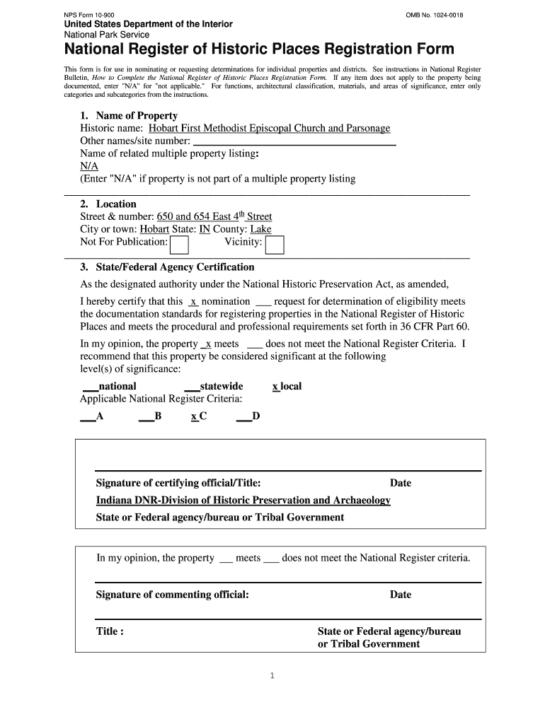NPS Form 10900OMB No. 10240018United States Department of the Interior National Park ServiceNational Register of Historic Places Registration Form This form is for use in nominating or requesting