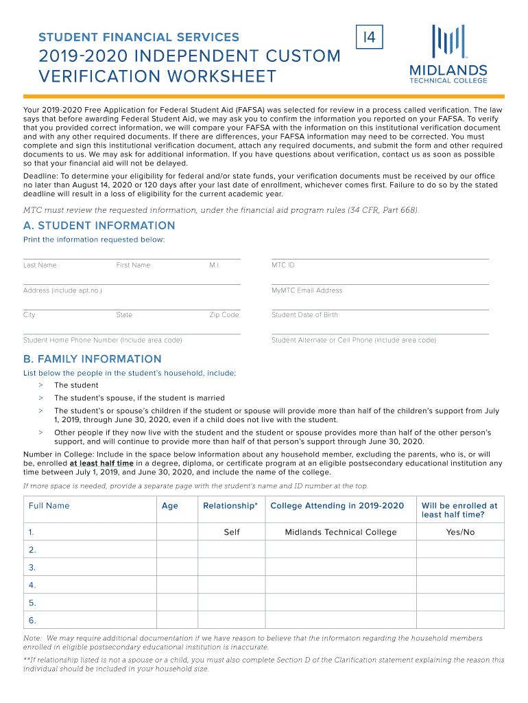 VERIFICATION WORKSHEETI4Your 20192020 Free Application for Federal Student Aid (FAFSA) was selected for review in a process called verification.