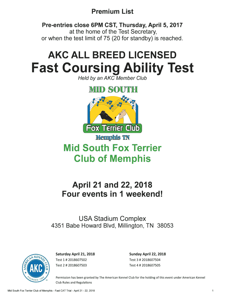 or when the test limit of 75 (20 for standby) is reached. AKC ALL BREED LICENSEDFast Coursing Ability