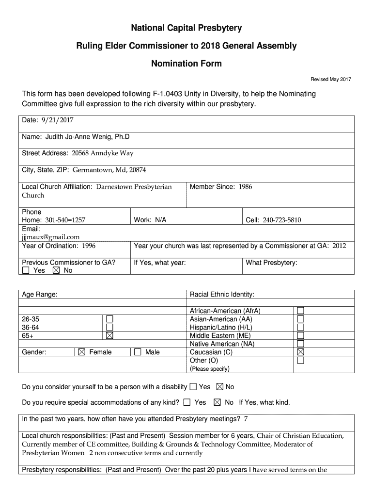 Get the free National Capital Presbytery Ruling Elder Commissioner to 2018 ...