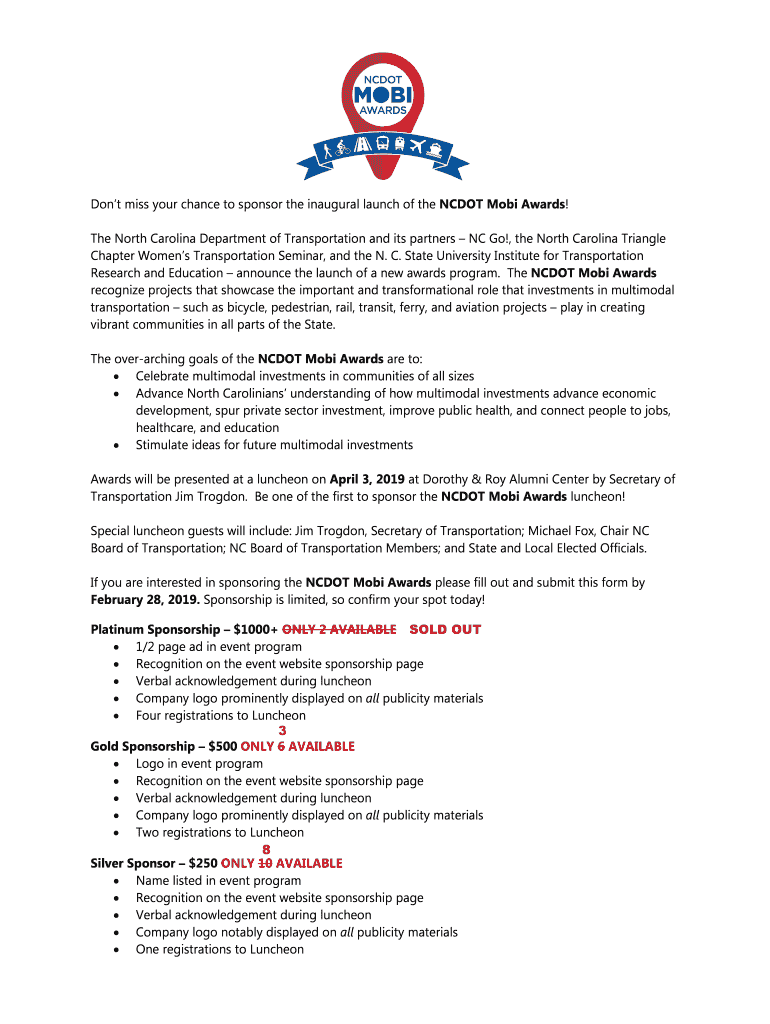 Don't miss your chance to sponsor the inaugural launch of the NC DOT Mob Awards! The North Carolina Department of Transportation and its partners NC Go!, the North Carolina Triangle Chapter Women's