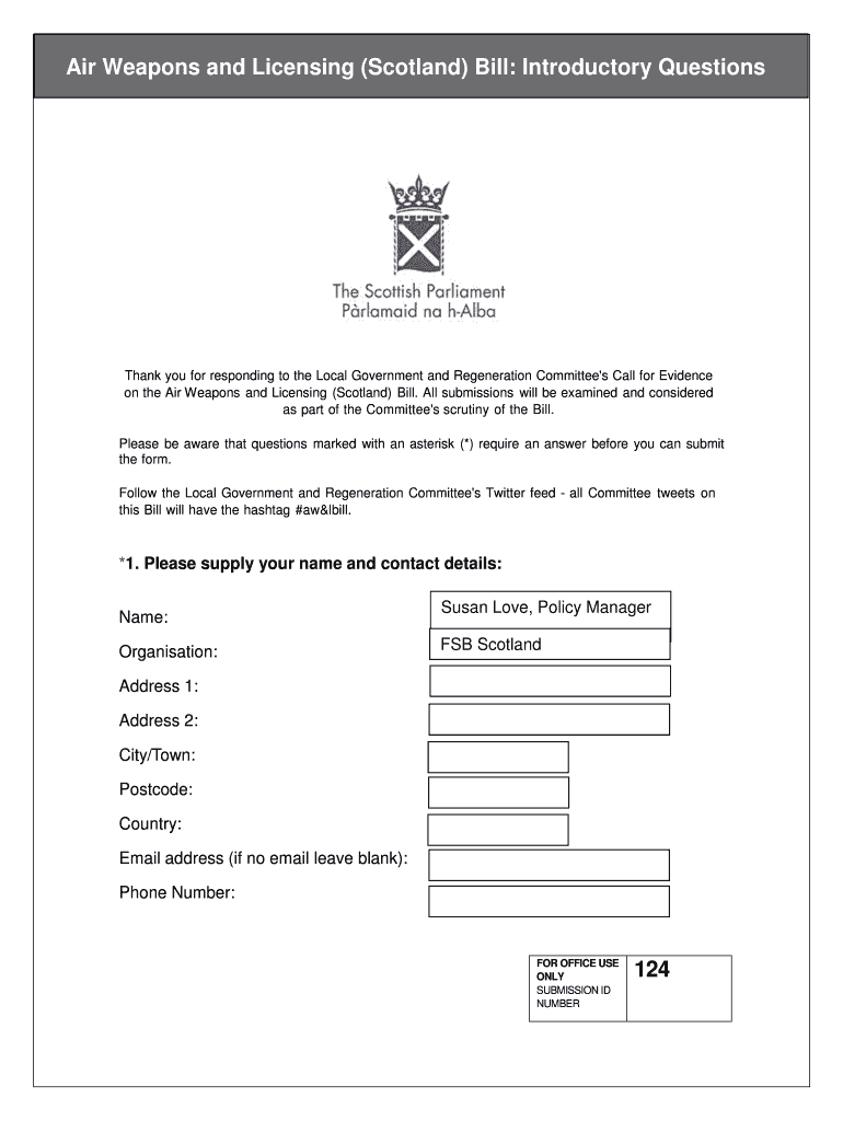 Air Weapons and Licensing (Scotland) Bill: Introductory QuestionsThank you for responding to the Local Government and Regeneration Committee's Call for Evidence on the Air Weapons and Licensing (Scotland)