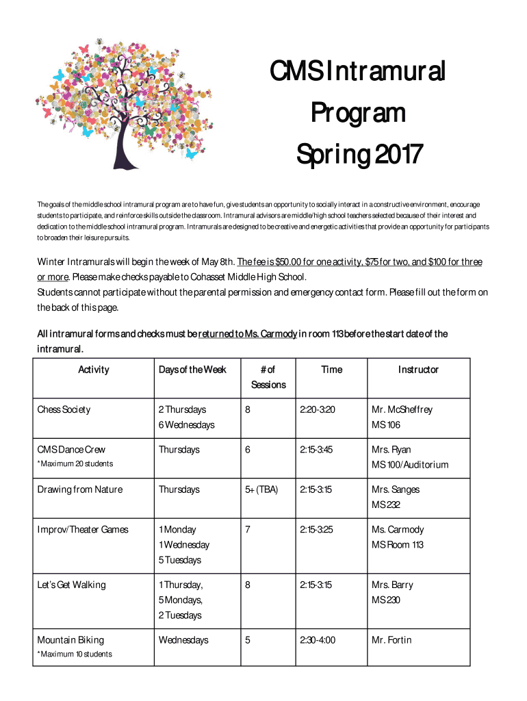 Anyone who wishes to participate in CMS Intramural activities needs to fill out the CMS Intramural form. This includes students, faculty, and staff members who want to join sports or recreational events organized by CMS.