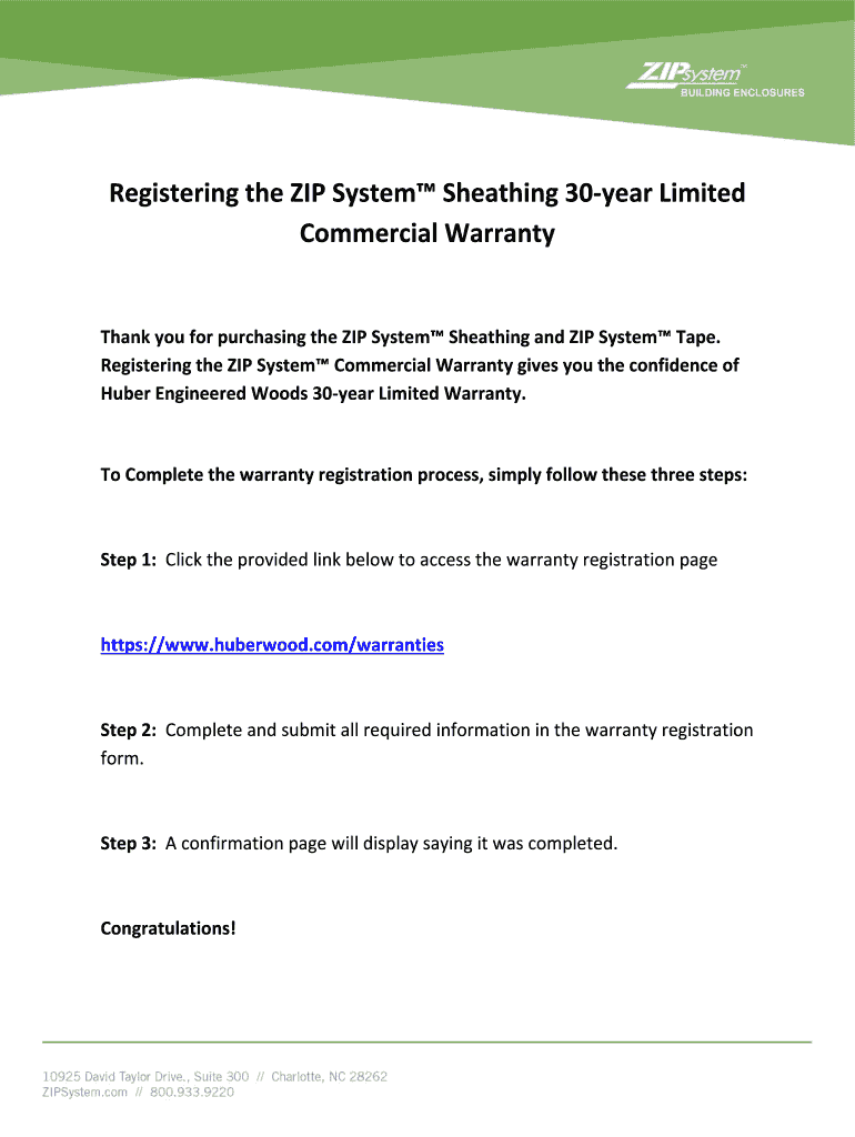 Get the free Registering the ZIP System Sheathing 30-year Limited ...
