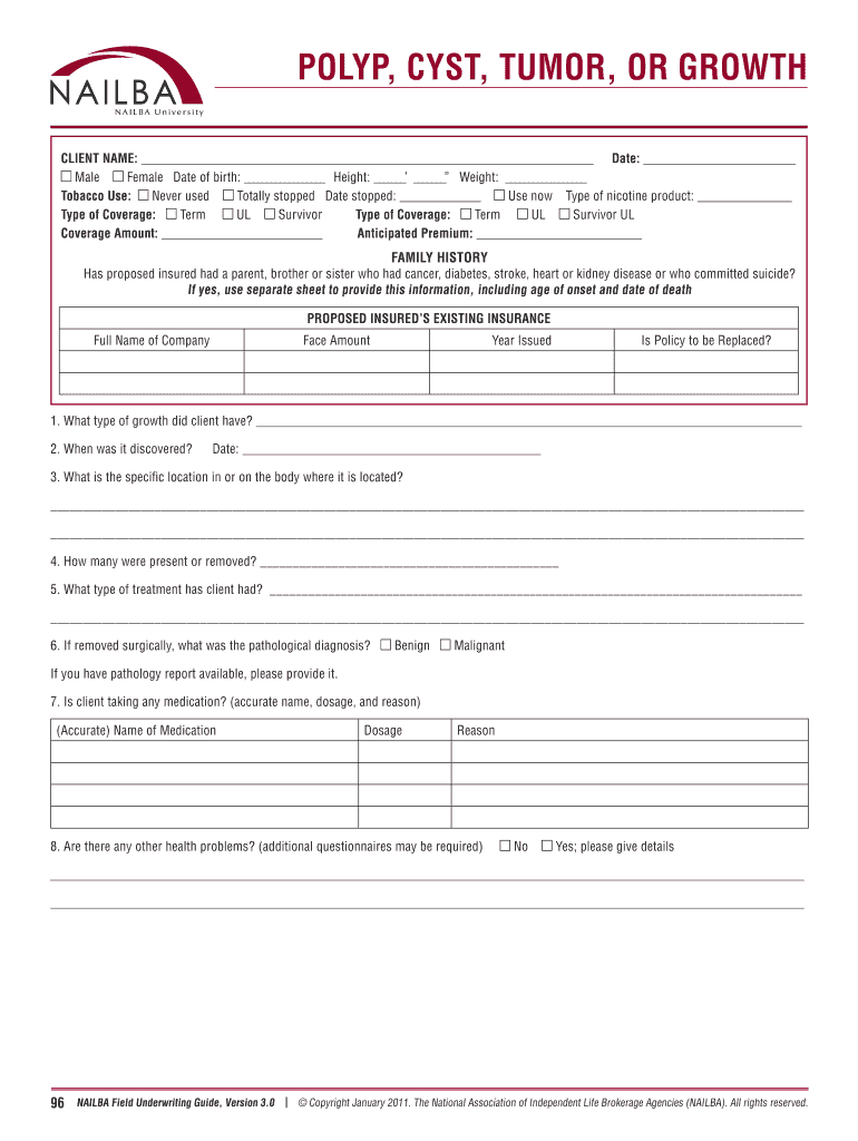 Get the free POLYP, CYST, TUMOR, OR GROWTH