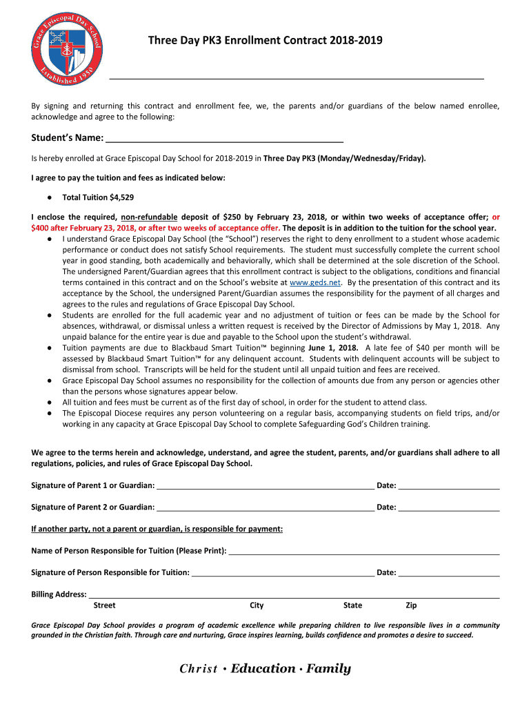 Get the free Is hereby enrolled at Grace Episcopal Day School for 2018-2019 in Three Day PK3 (Mon...