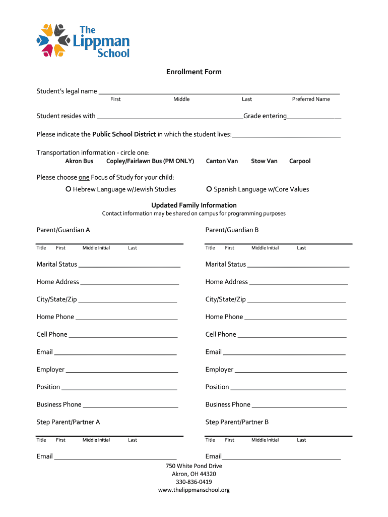 Enrollment Form Students legal name FirstMiddleLastPreferred NameStudent resides with Grade entering Please indicate the Public School District in which the student lives: Transportation information