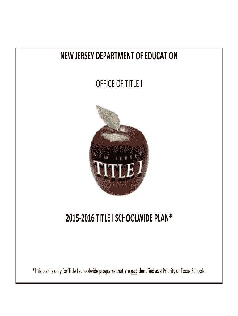 NEW JERSEY DEPARTMENT OF EDUCATION OFFICE OF TITLE I20152016 TITLE I SCHOOLWIDE PLAN**This plan is only for Title I schoolwide programs that are not identified as a Priority or Focus Schools. SCHOOLKID