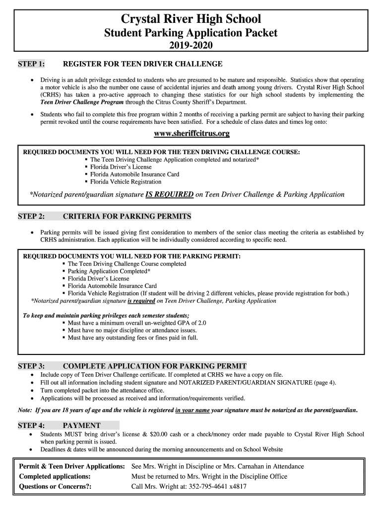 Get the free Student Parking Application Packet - crh citrusschools