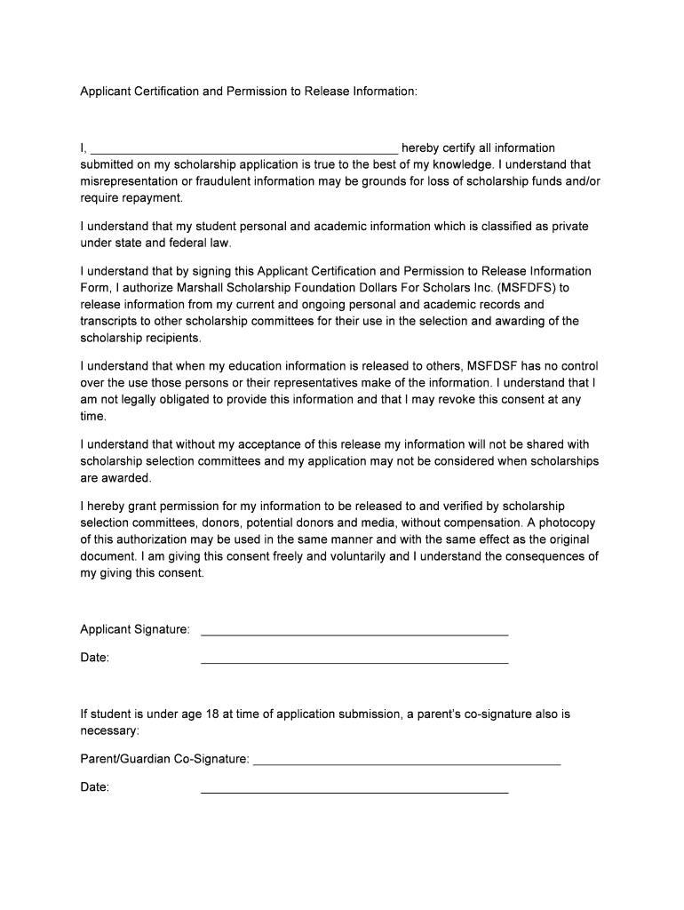 Get the free Applicant Certification and Permission to Release Information