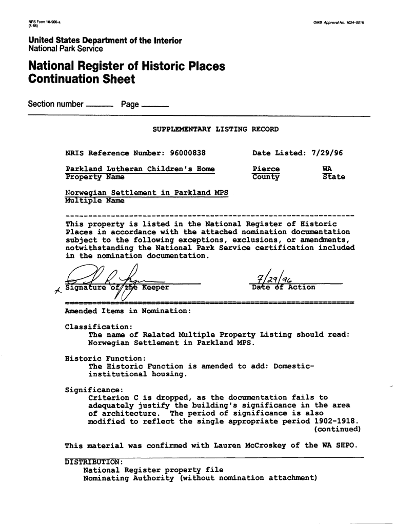 NPS Form 10900a (886)OMB Approval No. 102443018United States Department of the Interior National Park ServiceNational Register of Historic Places Continuation Sheet Section number Page SUPPLEMENTARY