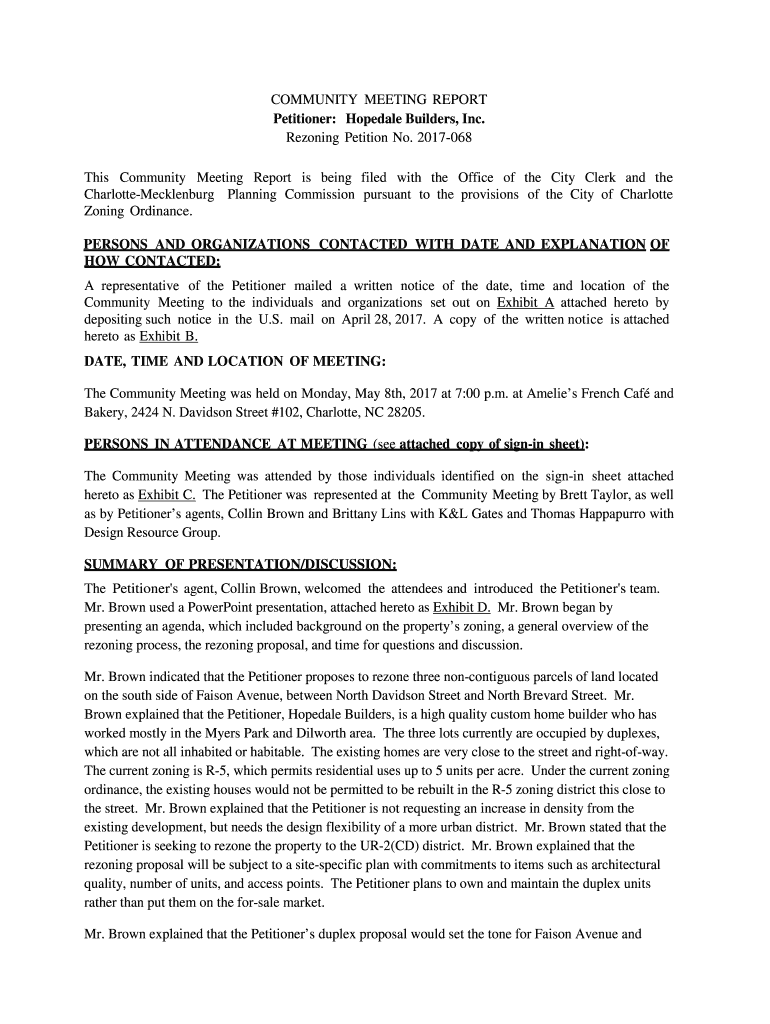 This Community Meeting Report is being filed with the Office of the City Clerk and the